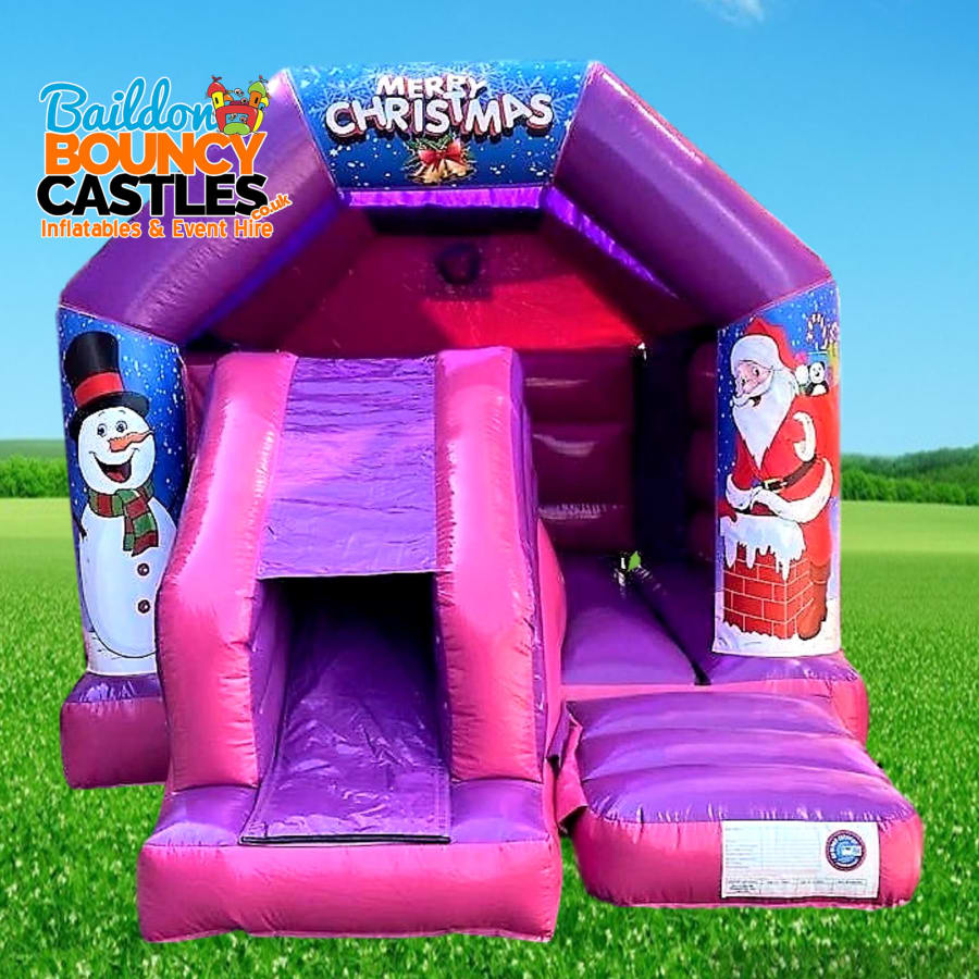 Our brand new, shiny Purple & Pink themed bouncy castle with slide is now available complete with side slide to double the fun! The new bouncy castle with slide is perfect for entertaining children of more adventurous nature. The children simply love the addition of the slide and it is sure to keep them entertained for hours. The Purple & Pink themed inflatable castle with slide hire is one of the most popular themed items in our range. This Purple & Pink inflatable still features all of the main characters on the front pillars which looks truly awesome at any party, gala, fun day or event!