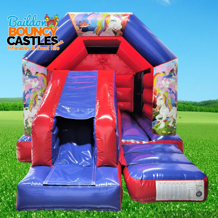 Our brand new, shiny red & blue, bouncy castle with slide is now available complete with side slide to double the fun! The new bouncy castle with slide is perfect for entertaining children of more adventurous nature. The children simply love the addition of the slide and it is sure to keep them entertained for hours. The red & blue themed inflatable castle with slide hire is one of the most popular themed items in our range. This red & blue inflatable still features all of the main characters on the front pillars which looks truly awesome at any party, gala, fun day or event!