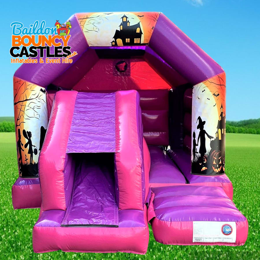 Halloween Silhouette Purple & Pink Bouncy Castle With Slide