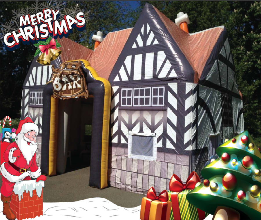 The inflatable Christmas pub is relatively lightweight in comparison, easy to set up and manoeuvre and are available throughout the UK for all manner of events. Our inflatable shelters are ideal for exhibitions, corporate events and occasions and showroom launches, Christmas services for functions, spectaculars, Schools, Universities, Christmas balls and black tie events and has been seen at several major events recently and is is available for delivery throughout Baildon, Bradford, Leeds, Shipley, Harrogate[/], Ilkley, Otley, Halifax, Keighley, Skipton, we also cover vast areas of North Yorkshire, West Yorkshire & nationwide with our nationwide delivery service.