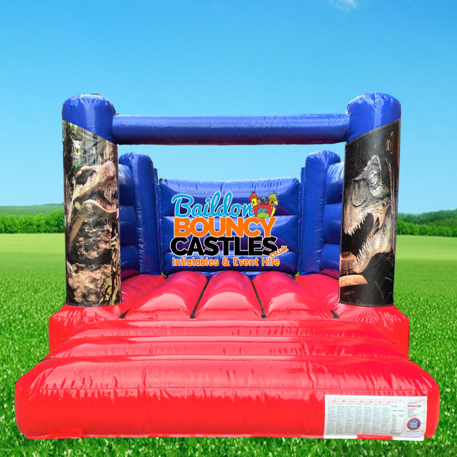 Dinosaur Blue & Red Low Height Bouncy Castle - 11ft x 15ft