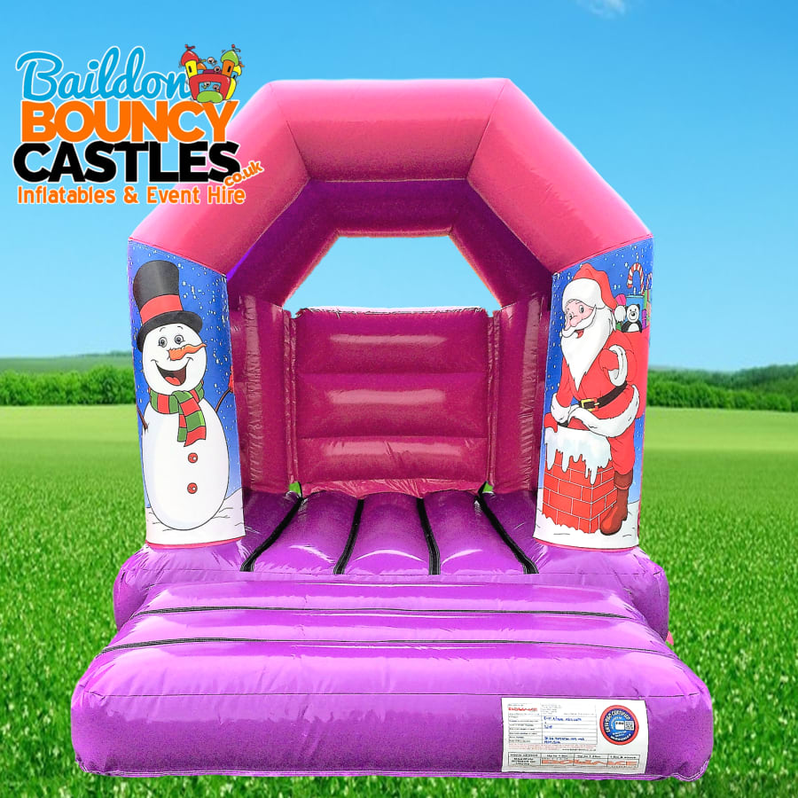 1. 1 x Christmas Santa & Snowman Theme Toddler Bouncy Castle in Pink & Purple