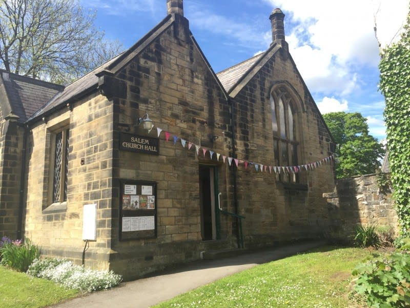 this little church is in the heart of Burley in Wharfedale a lovely church that can host a small birthday party for you . no issues with ceiling height although it is narrow so you could not have a bouncy castle with a slide on the side ,you can have the front slide and any other themed castles that we have to offer .